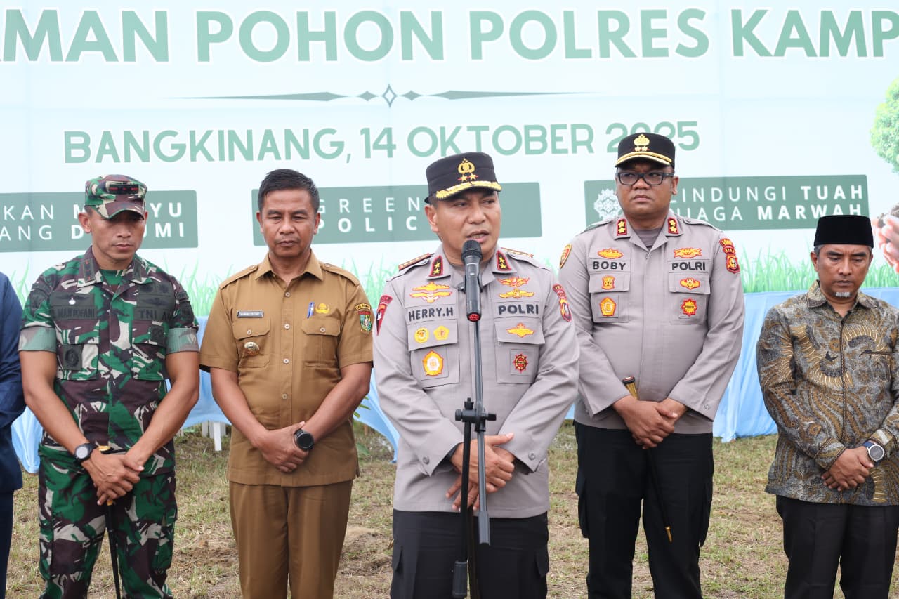 KAMPAR — Dalam rangka mendukung Program pelestarian lingkungan dan penghijauan, Ketua DPRD Kabupaten Kampar menghadiri acara penanaman pohon yang digelar di halaman Mapolres Kampar, Selasa (14/10/2025).